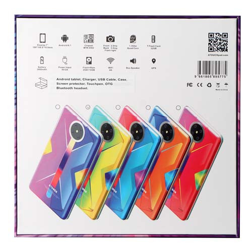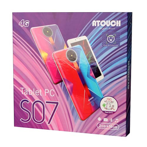 تبلت دانش آموزی S07 محصول دیگری از شرکت Atouch است. این تبلت از طراحی زیبا و کیفیت خوبی برخوردار بوده و اقلامی مانند محافظ صفحه نمایش، قاب ژله ای، قلم، شارژر، ایرپاد، انگشتی نگه دارنده تبلت، کابل و otg، همراه آن ارائه میشود. این دستگاه از دو سیم کارت و شبکه ارتباطی 4G پشتیبانی مینماید.