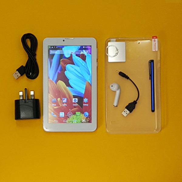 اقلام همراه: محافظ صفحه نمایش، قاب ژله ای، قلم، شارژر، ایرپاد، انگشتی نگه دارنده تبلت، کابل، otg، دفترچه راهنما