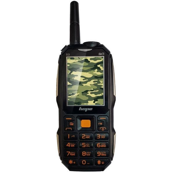 گوشی موبایل S3 از جدیدترین محصولات کمپانی هوپ، به تازگی به بازار عرضه شده است. این گوشی موبایل برای افرادی با مشاغل سخت مانند نظامیان، کوهنوردارن، محیطبانان و … گزینهی مناسبی میباشد. این دستگاه از امکاناتی چون پشتیبانی از دو سیم کارت و رم، قابلیت تبدیل به پاوربانک، پشتیبانی از تلویزیون آنالوگ و … برخوردار است.