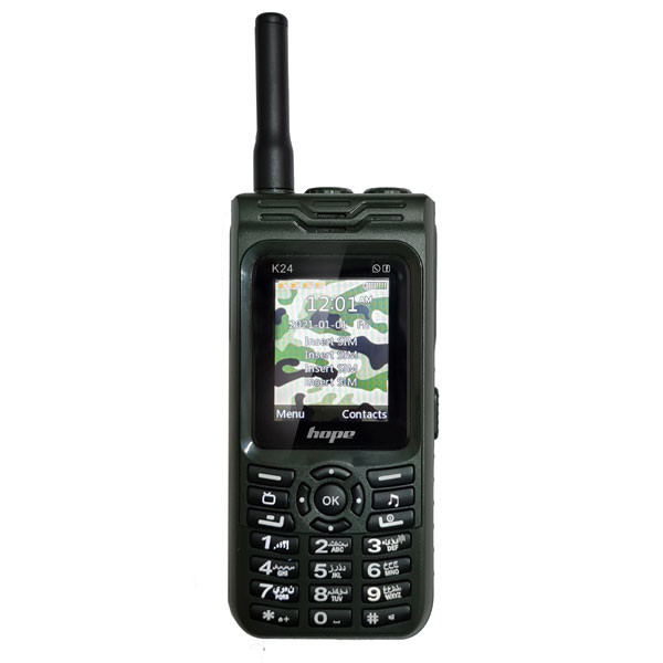 گوشی موبایل Hope مدل K24 برای کاربرانی با مشاغل سخت مانند افراد نظامی، طبیعیت گردان، کوهنوردان و … گزینه مناسبی است. این دستگاه از چهار سیم کارت و رم به طور همزمان، تلویزیون و قابلیت تبدیل به پاوربانک پشتیبانی میکند. این گوشی از آنتن دهی خوبی برخوردار است.